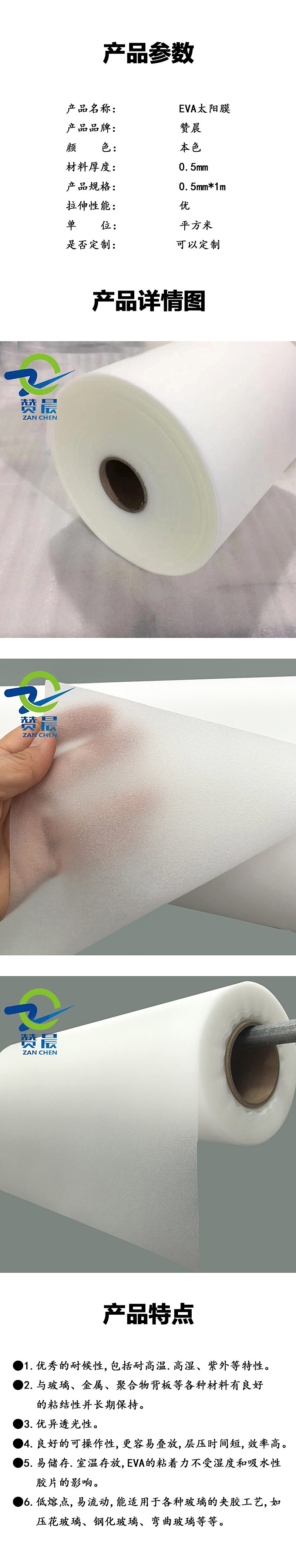 EVA photovoltaic film bonding sponge metal parts glass textile fastness EVA film material